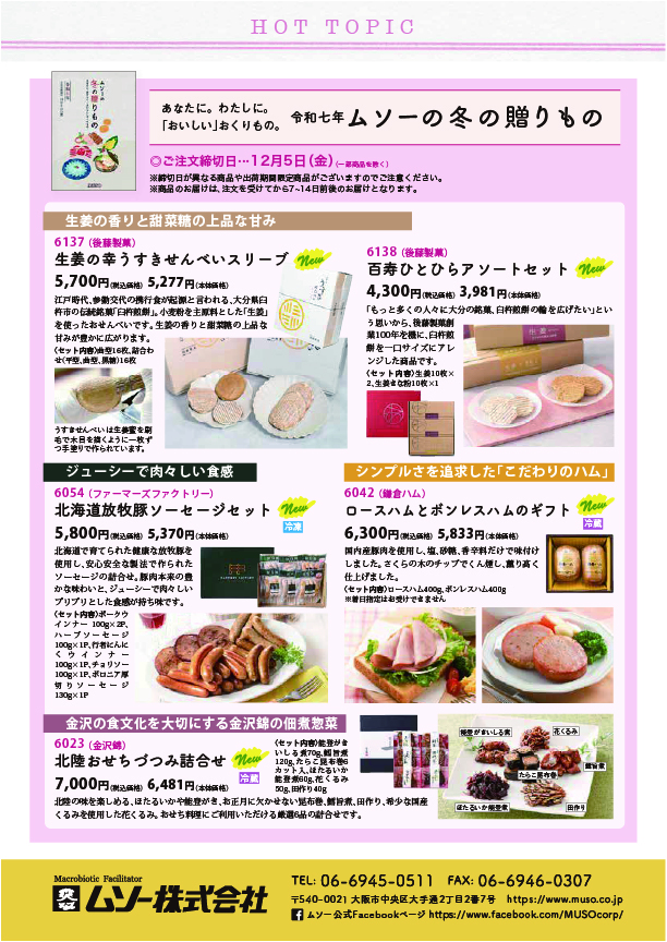 あなたに。わたしに。「おいしい」おくりもの。 令和七年 ムソーの冬の贈りもの