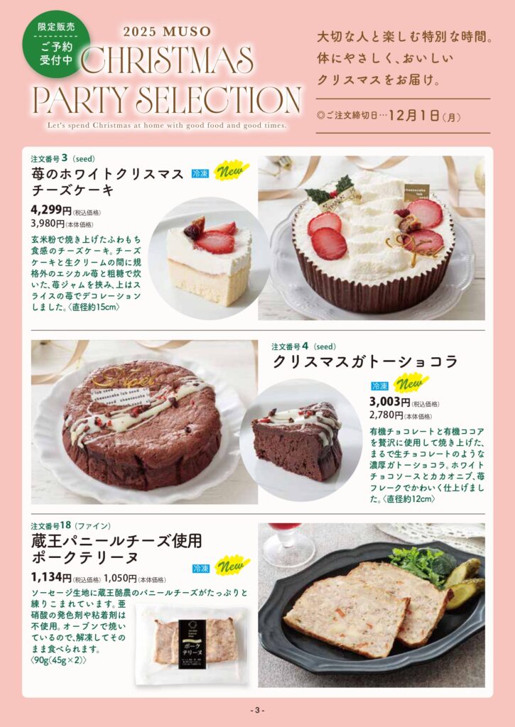大切な人と楽しむ特別な時間。体にやさしく、おいしいクリスマスをお届け。