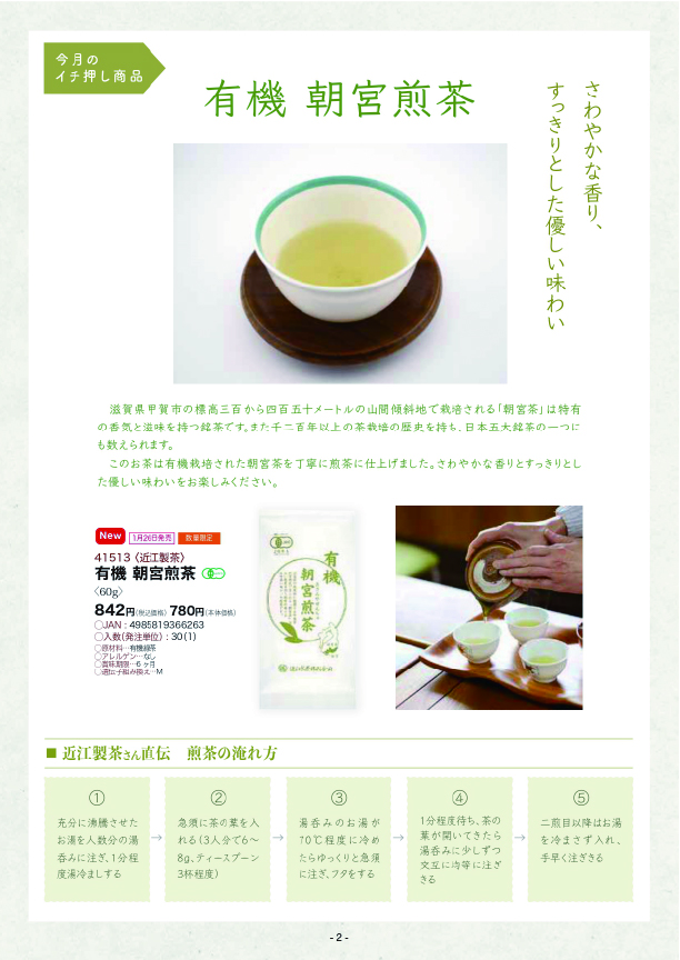◎41513(近江製茶)有機 朝宮煎茶60g